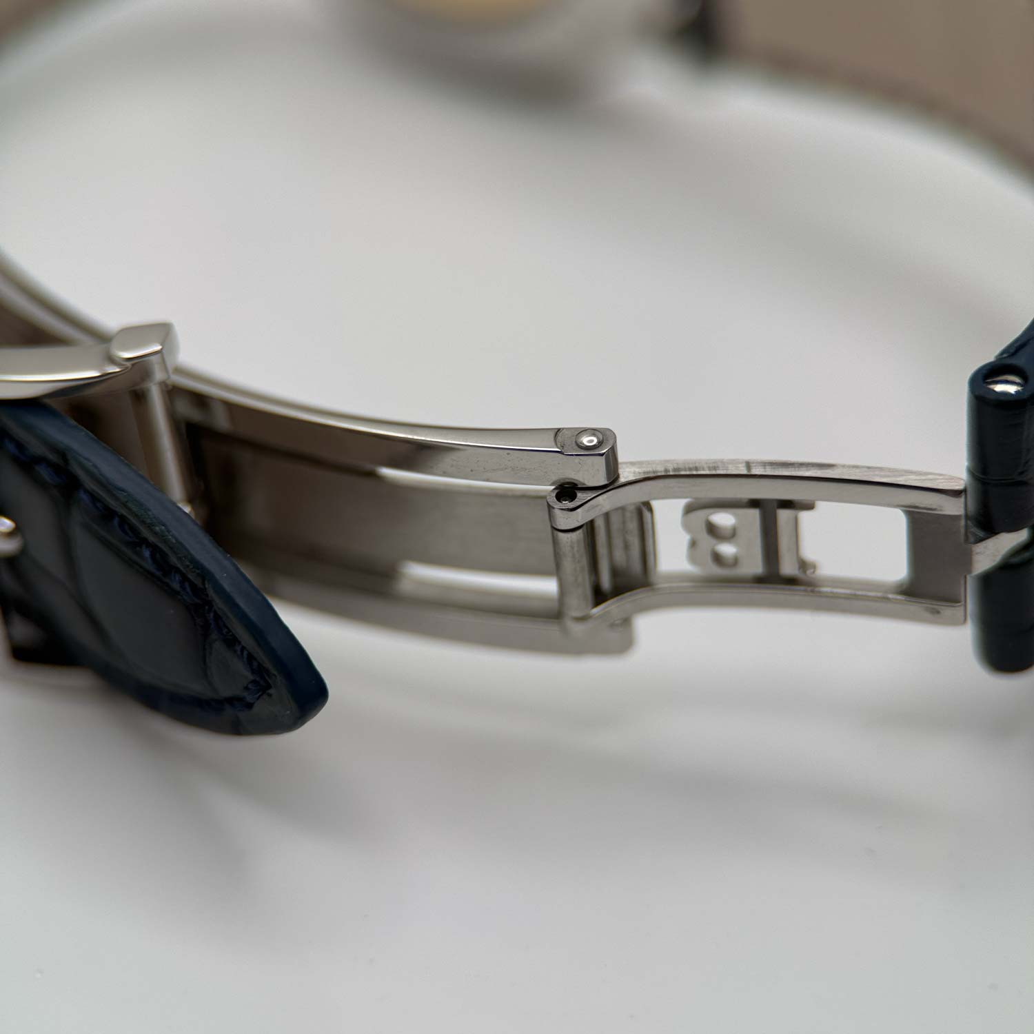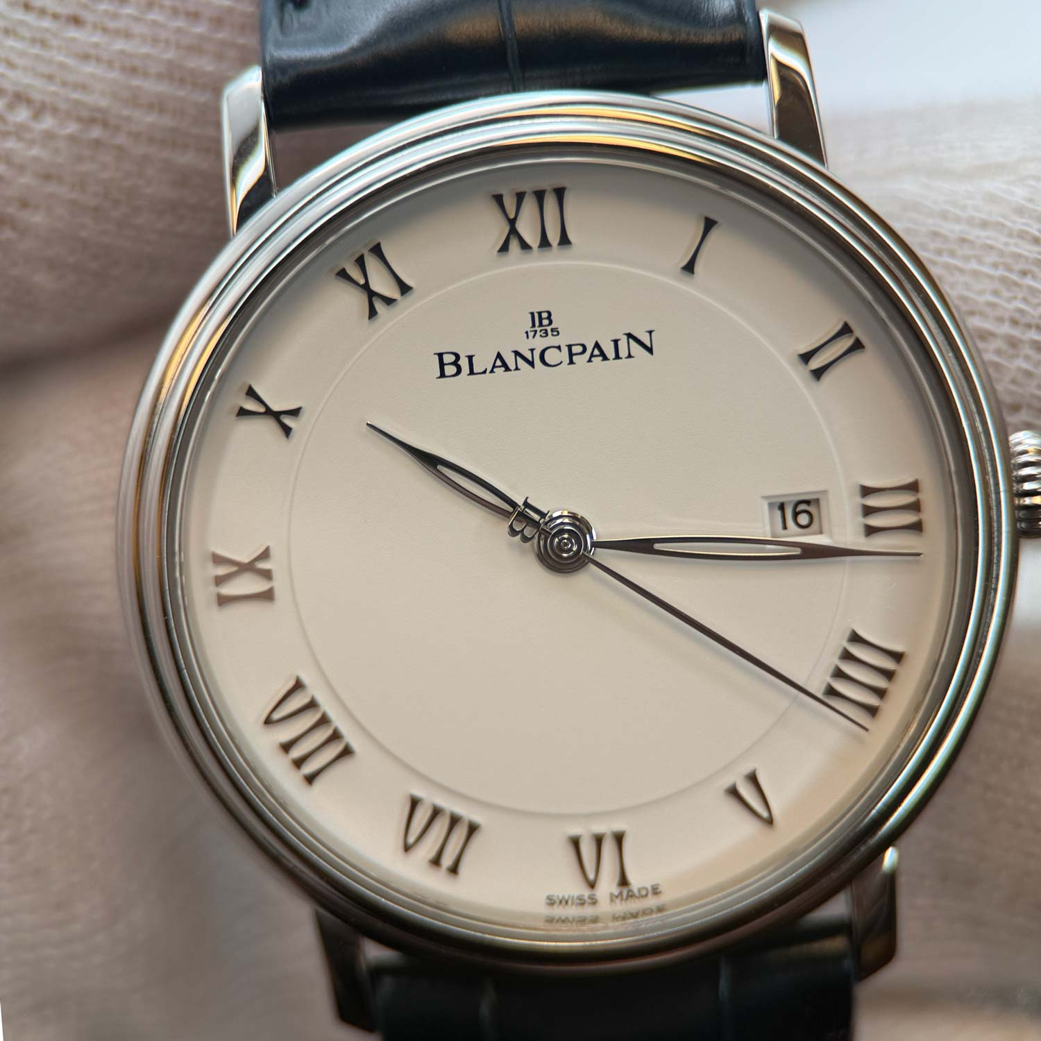This Blancpain Villeret Ultra-Slim is in excellent condition, exhibiting only minor signs of careful wear. The case remains sharp and polished, the sapphire crystal flawless, and the leather strap supple and well-preserved. The watch runs smoothly and keeps precise time. It has been fully authenticated and is ready for immediate enjoyment.